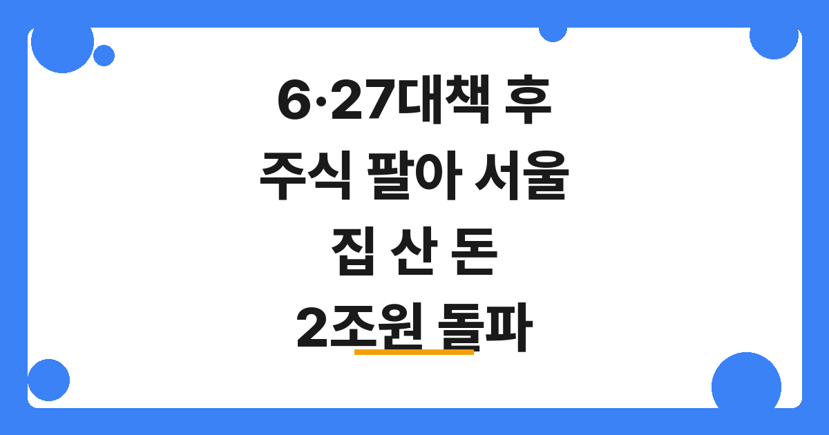 안녕하세요 여러분! 오늘은 요즘 부동산 시장에서 정말 화제가 되고 있는 이슈를 다뤄볼까 합니다. 이재명 정부의 첫 부동산 정책인 ‘6·27 대책’이 나온 이후에요, 주식이랑 채권을 팔아서 서울에 집을 산 돈이 무려 2조원을 넘었다고 하더라고요..!